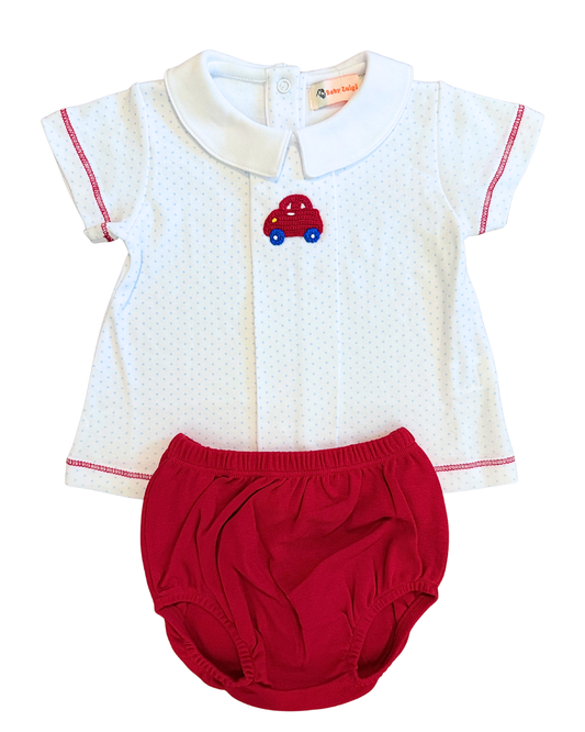 Luigi Crochet Car on Sky Bitty Dot Diaper Set