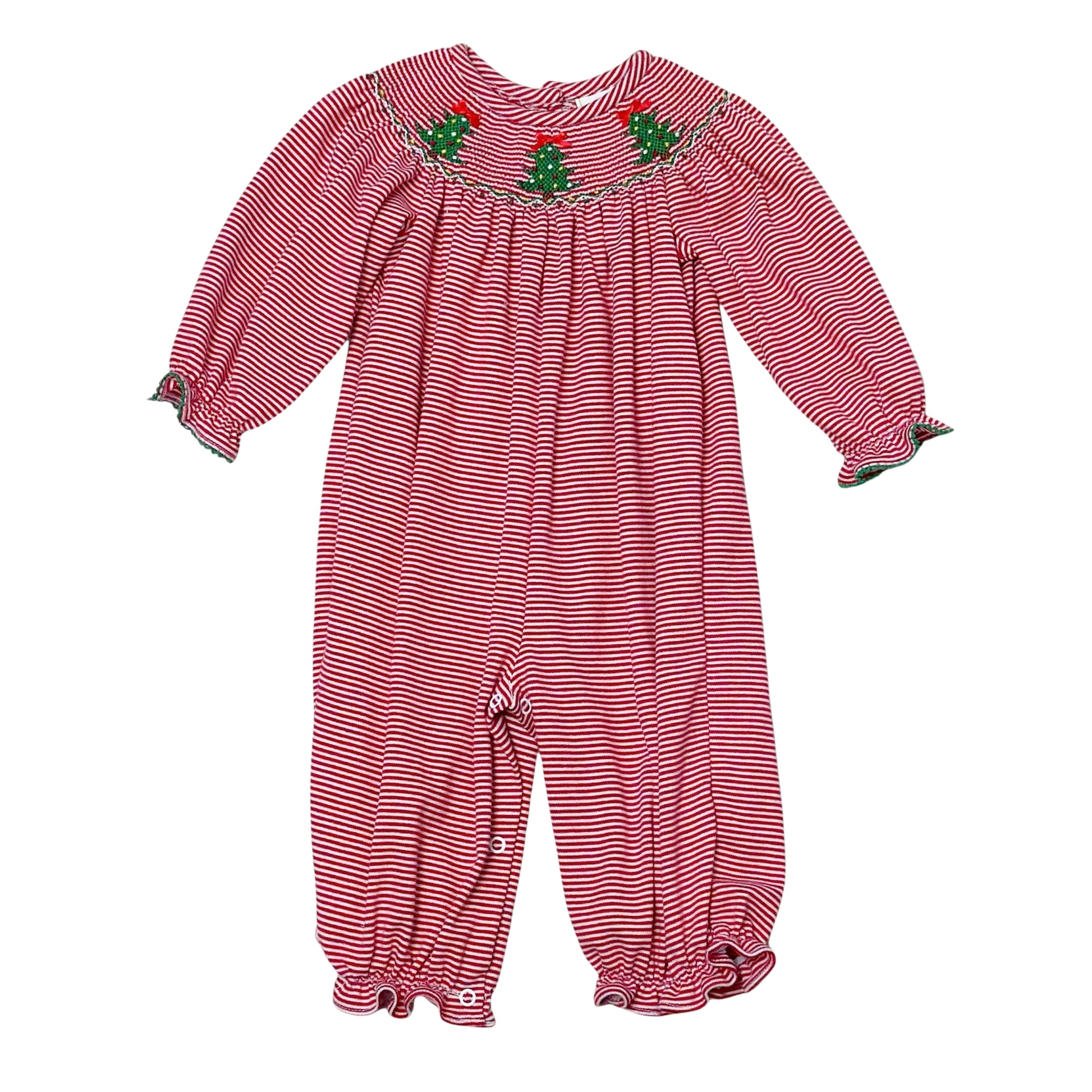 Spread Christmas cheer with this adorable Christmas Tree Smocked Bitty Stripe Knit Billie Bishop Bubble from Zuccini! Bursting with festive red and green colors, it features a delightful traditional Christmas tree smocked design that captures holiday spirit. The cozy bitty stripe knit keeps kids comfortable through all their seasonal adventures, from holiday parties to Christmas Day excitement. A playful bubble romper that's sure to become a seasonal favorite!