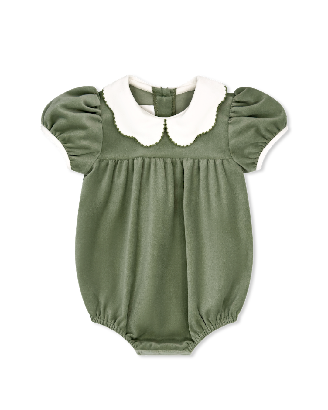 The sage green Leyland Velvet heirloom Special Moments Bubble by Lullaby Set is expertly designed for holiday gatherings and family portraits. Crafted from sumptuous velvet, it offers a refined texture and classic silhouette that photograph beautifully. This timeless bubble combines comfort with elegant style, making it an exceptional choice for memorable seasonal celebrations and cherished family moments.