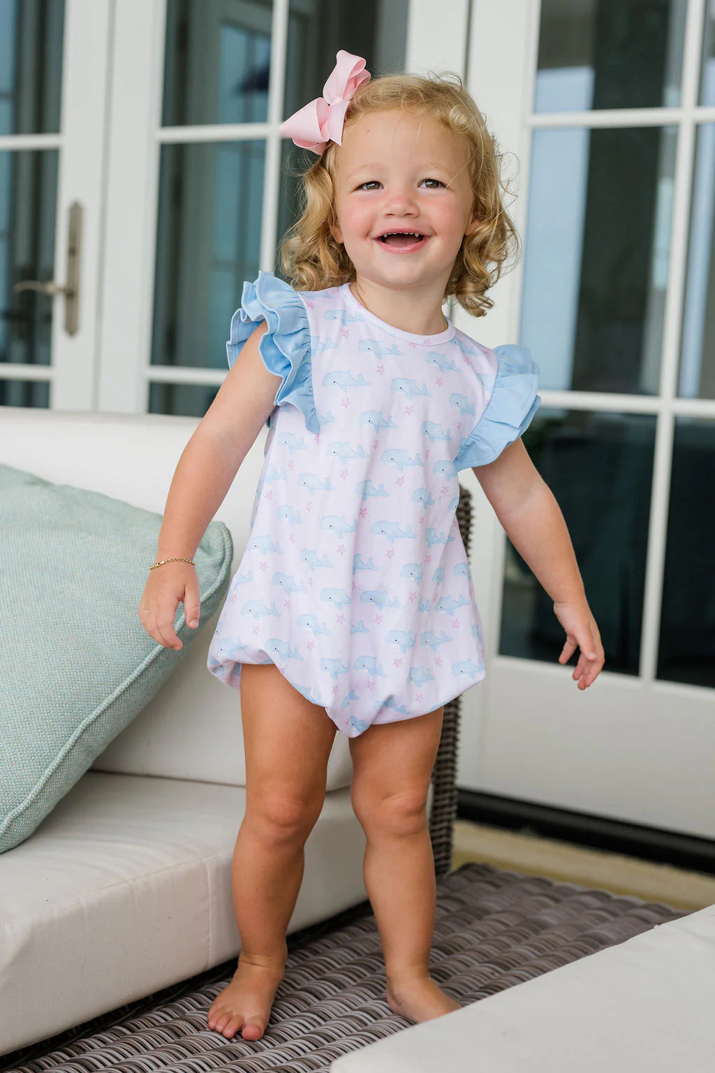 Adorable whale and star pattern by James and Lottie brings whimsy to this soft knit bubble, perfect for everyday comfort and sibling matching moments. The gentle design and cozy fabric make it an ideal choice for playtime, while the coordinating pieces in this sweet sibling match collection let you dress your little ones in coordinated style. Lightweight and easy to move in, this bubble transitions seamlessly from playground to casual outings.